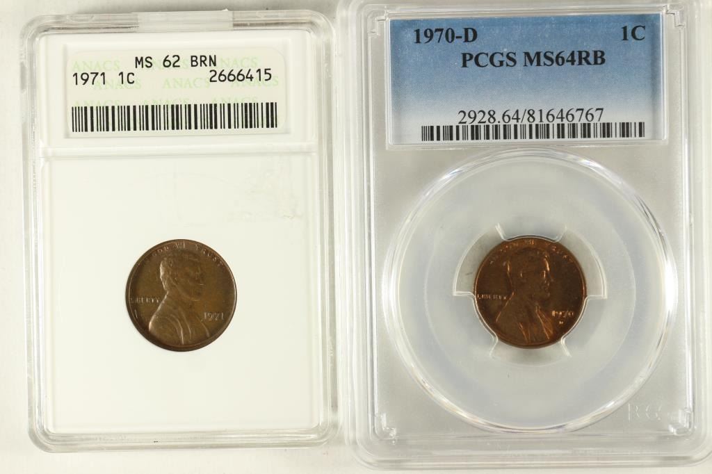 ANACS MS62BRN AND 1970-D LINCOLN CENT PCGS MS64RB