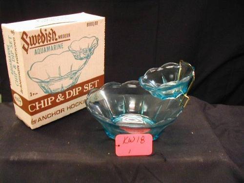 ANCHOR HOCKING AQUAMARINE SWEDISH MODERN CHIP & DIP SET ORIGINAL BOX & TAGS, NEVER USED