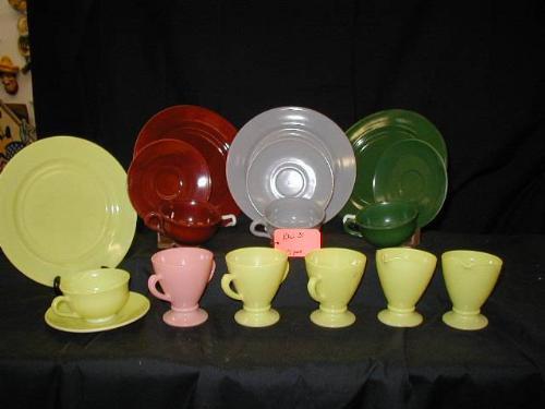 ANCHOR HOCKING LUNCH SET, PLATONITE LIKE INCLUDES COMPLETE SERVICE FOR, 4 PLUS (3) FTD. DBL. HNDL. SUGAR, (2) FTD. CREAMERS, EXCELLENT