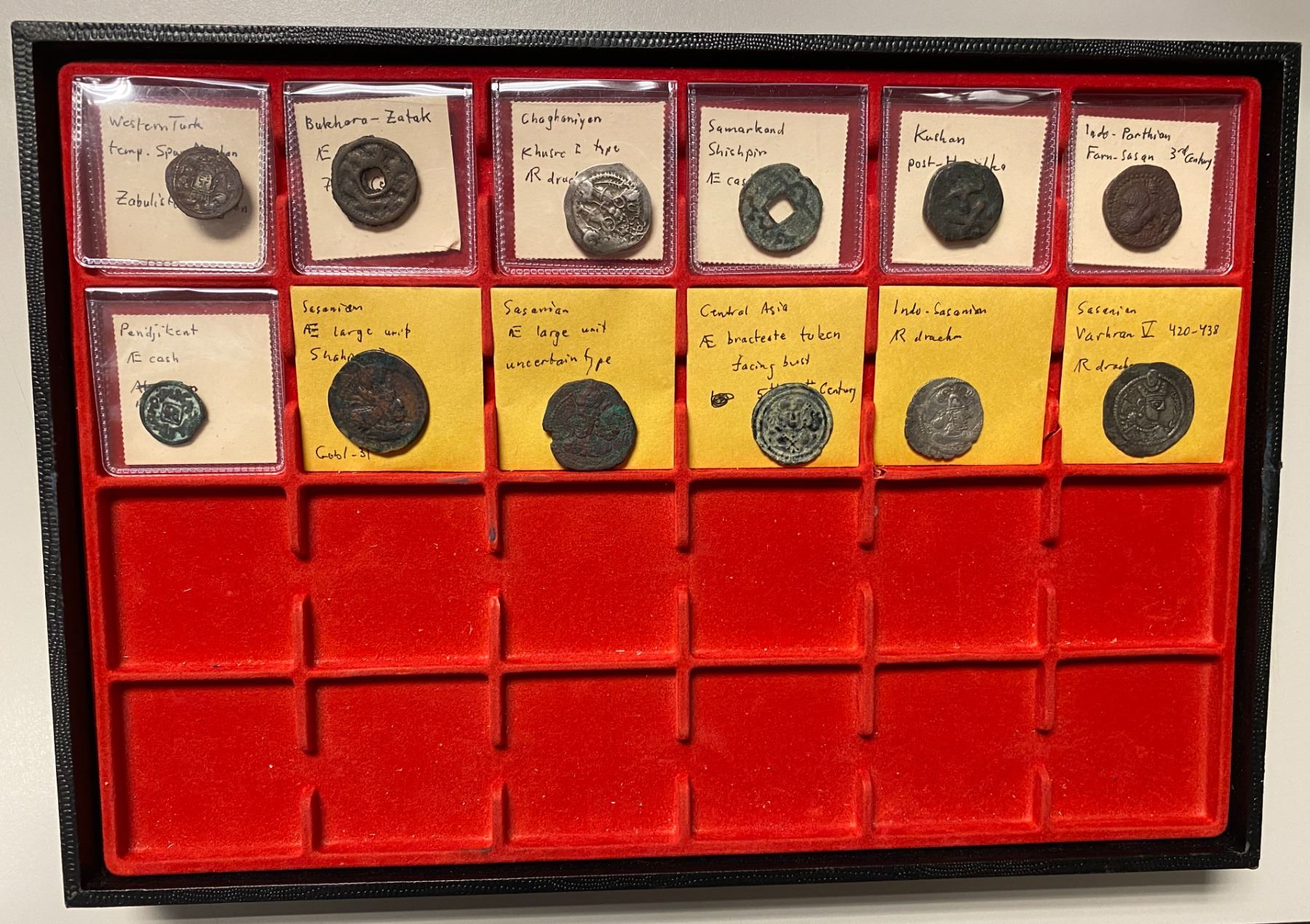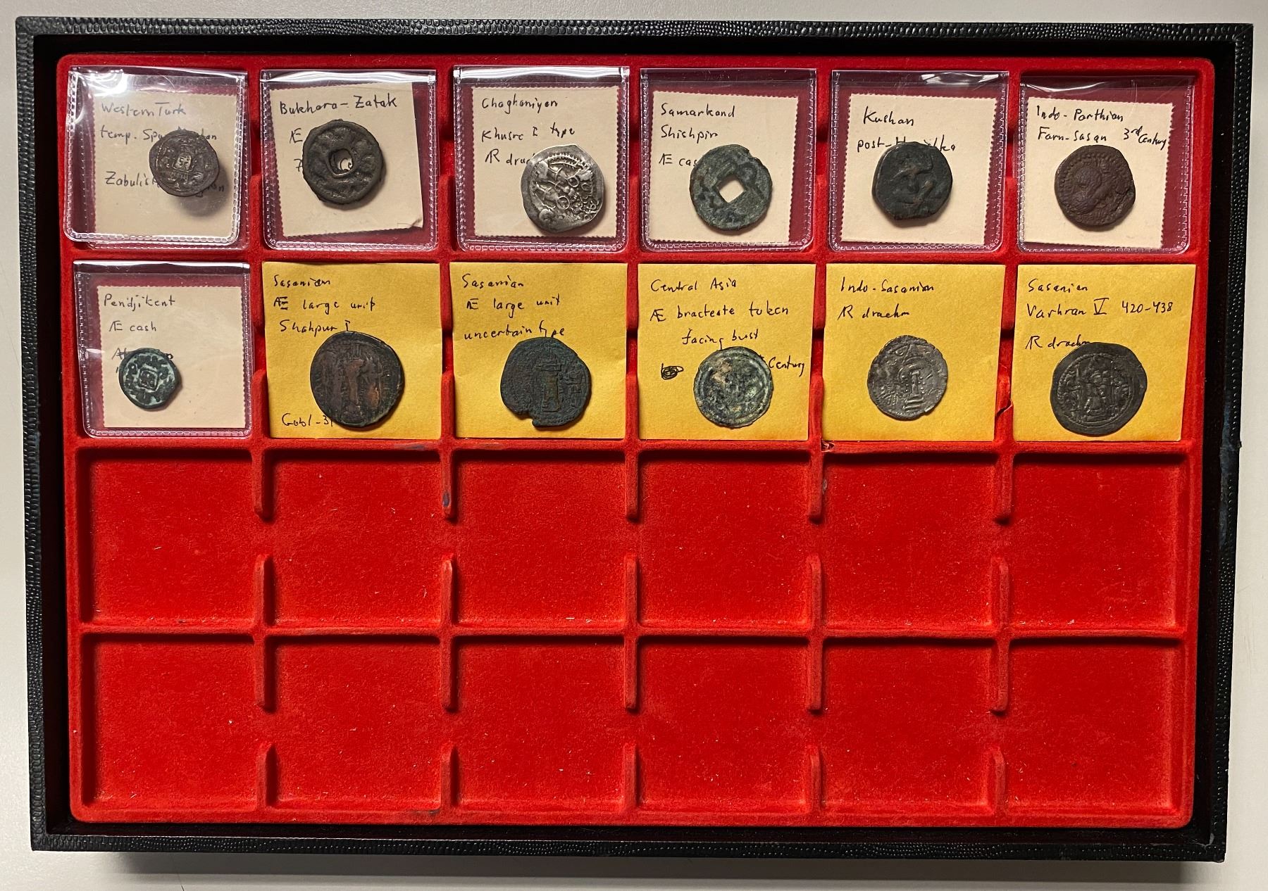 ANCIENT CENTRAL ASIA & related: LOT of 3 silver & 9 copper coins, Silver: Sasanian, Varhran V (1 pc); Indo-Sasanian, anonymous (1), and Chaghaniyan, Sasanan style (1); Copper: Samarkand, Shishpur (1); Bukhara, Zatak (1); Zabulistan, Spur Martan (1); local AE bracteate burial token (1); Indo-Parthain, Farn-Sasan (1); Kushan, post-Huvishka (1), Pandjikent, Amukyan (1); and Sasanian large copper coins, Shahpur I (1) and uncertain (1), average circulated grades, a few with various small defects; retail value $625, lot of 12 pieces.