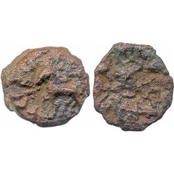 City State Issue, Sutimati, Copper, 1.82g, Obv: Horse walking to left, Rev: Tree in railing. Very fine, rare.