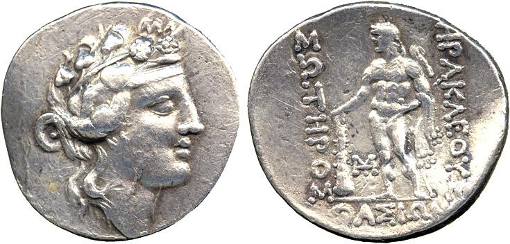 ANCIENT COINS. Greek. Thracian Islands, Thasos (after c.146 BC), Silver Tetradrachm, head of Dionysos right, wearing vine-wreath, rev Herakles standing facing head left, holding club and lion’s skin, 16.84g (SNG Cop 1040). Slightly wavy flan, very fine.