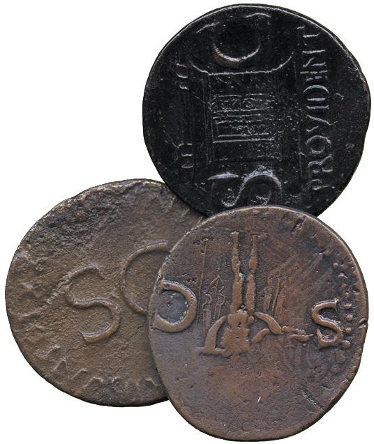 ANCIENT COINS. Roman. Augustus, AE As, rev legend around SC; Divus Augustus, AE As, rev altar enclosure; Agrippa (d. 12 BC), AE As, struck under Caligula, rev Neptune. Good fine. (3)