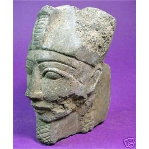 The above listed item is from the 19th dynasty, the statue is carved from stone and it depict the head of king RAMSES wearing a royal crown and a fake beard. The statue has some cracks on the face as well as the crown those are impact and age wear. The Ramses head is in a very good condition.