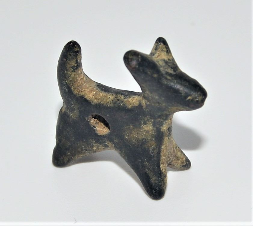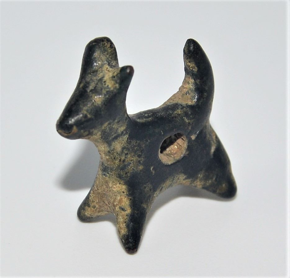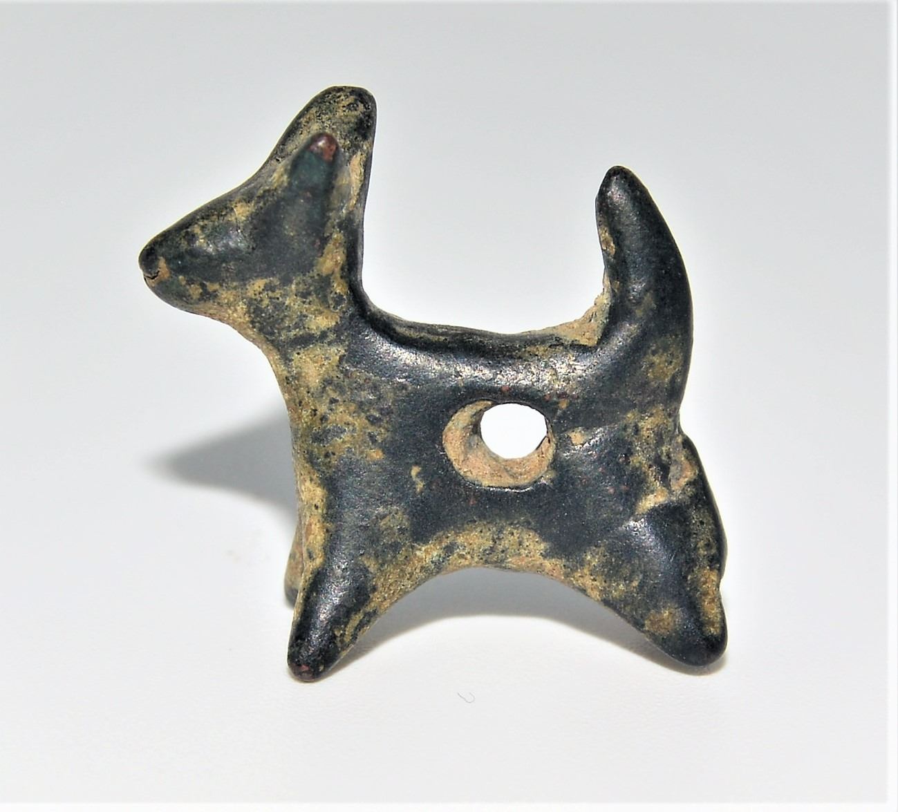 A RARE ANCIENT GREEK OR ISLAMIC BRONZE FIGURE OF ANIMAL ( PROBABLY COW OR GOAT ) PENDENT.