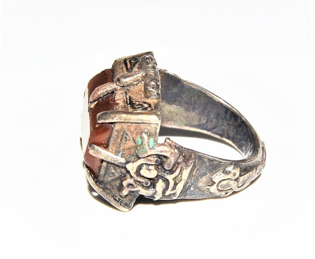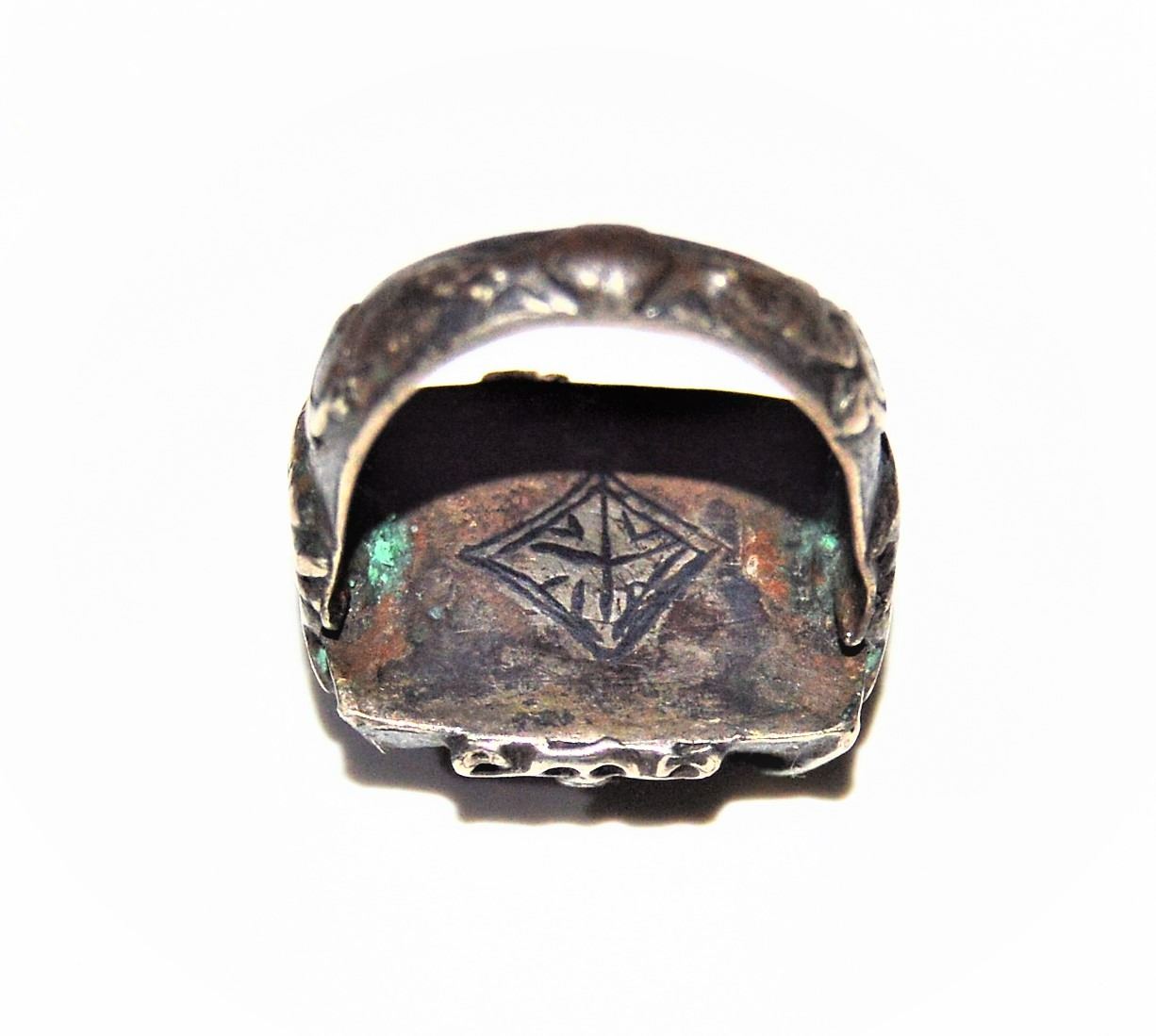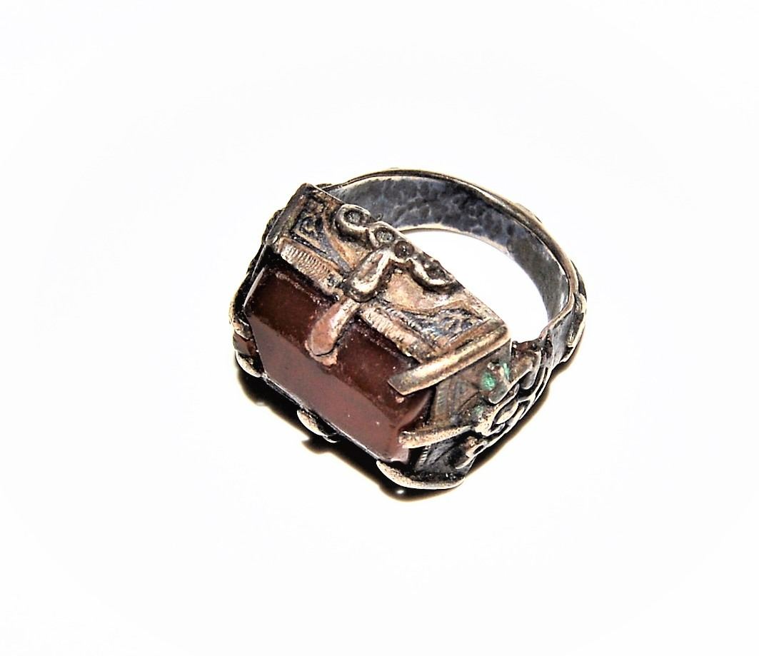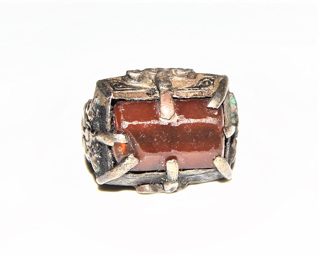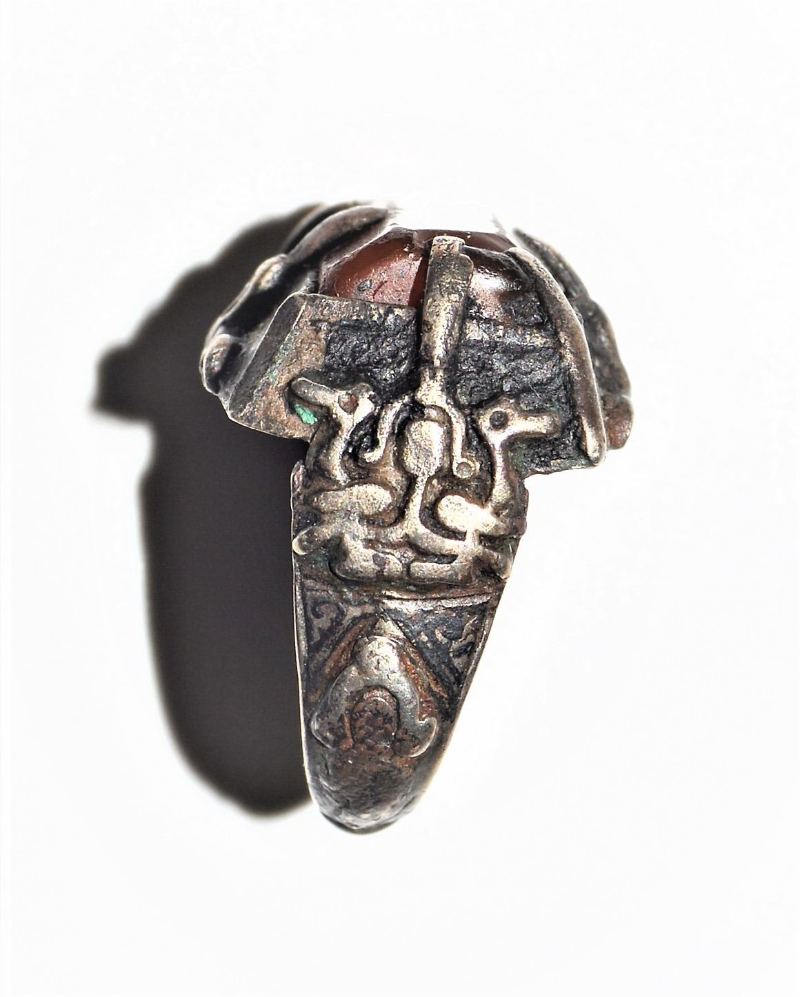 A RARE ANCIENT ISLAMIC SELJUK HAQEEQ ( AGATE ) NIELLO & SILVER RING, PERSIA OR CENTRAL ASIA CIRCA 11TH