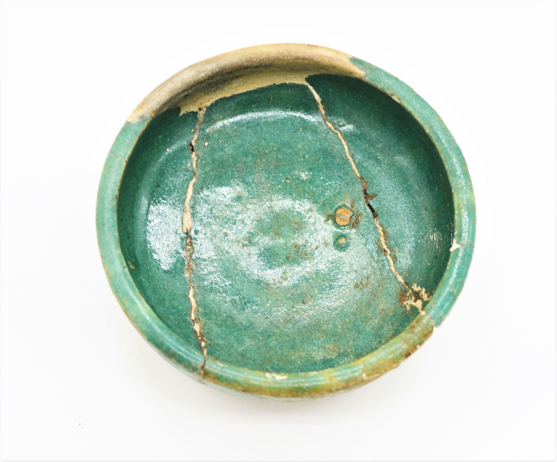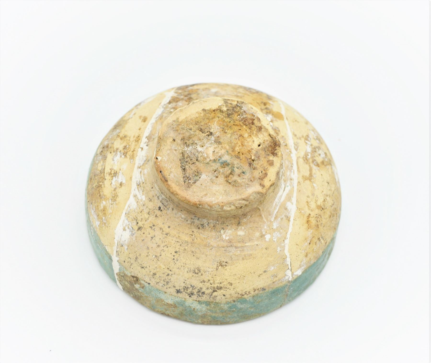 A RARE ANCIENT ISLAMIC SELJUK TURQUOISE GLAZED BOWL, CIRCA 9th-11TH CENTURY.Of rounded form with everted rim