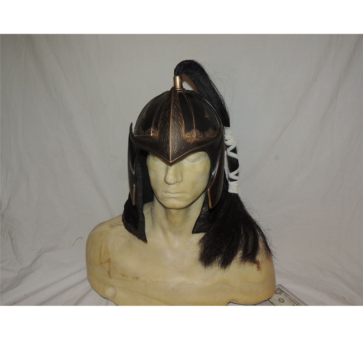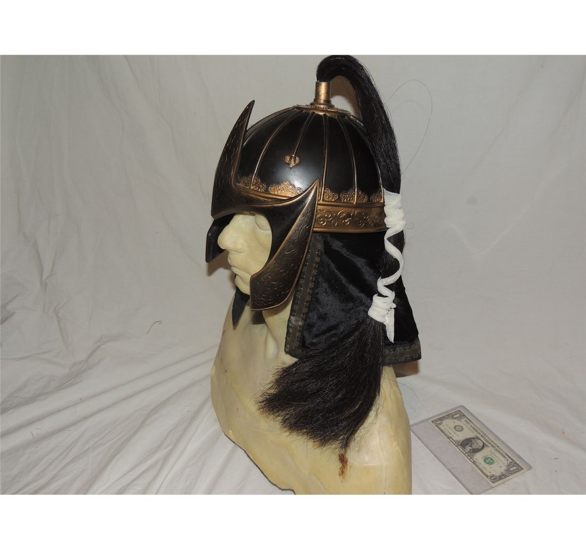 This is 1 of several Ancient Mongolian Warrior open faced helmets of this type. These are from a noted film, but I can not cite the title in title.