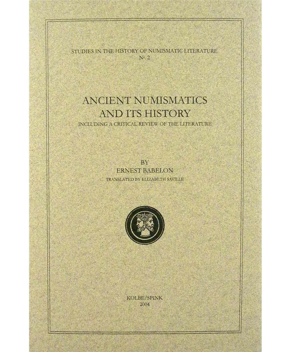 Babelon, Ernest. ANCIENT NUMISMATICS AND ITS HISTORY: INCLUDING A CRITICAL REVIEW OF THE LITERATURE. Translated by Elizabeth Saville. London and Crestline, California: Spink and Kolbe, 2004. 8vo, original green cloth; jacket. Frontispiece portrait; 248 pages. Fine. A translation of Babelon’s introduction to his Traité des monnaies grecques et romaines, probably the single best overview of numismatic literature ever written. Studies in the History of Numismatic Literature, No. 2. Daehn 21.