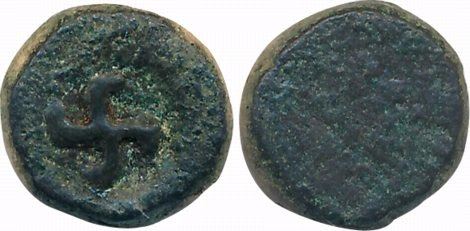 Post- Mauryan, Taxila Region, Copper, 3.69g, Uniface, Swastika incused in round (Pieper# 1072). Patinated, very fine, scarce.