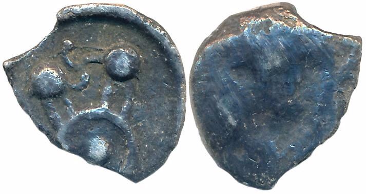 Punch Marked, Attributed to Kuntala Janpada- Wai series, Silver Fractional Unit, 1.58g, Uniface, "Pulley" type, Pulley symbol on obverse (Rajgor Series 29). Nice deep punch, extremely fine, extremely rare.