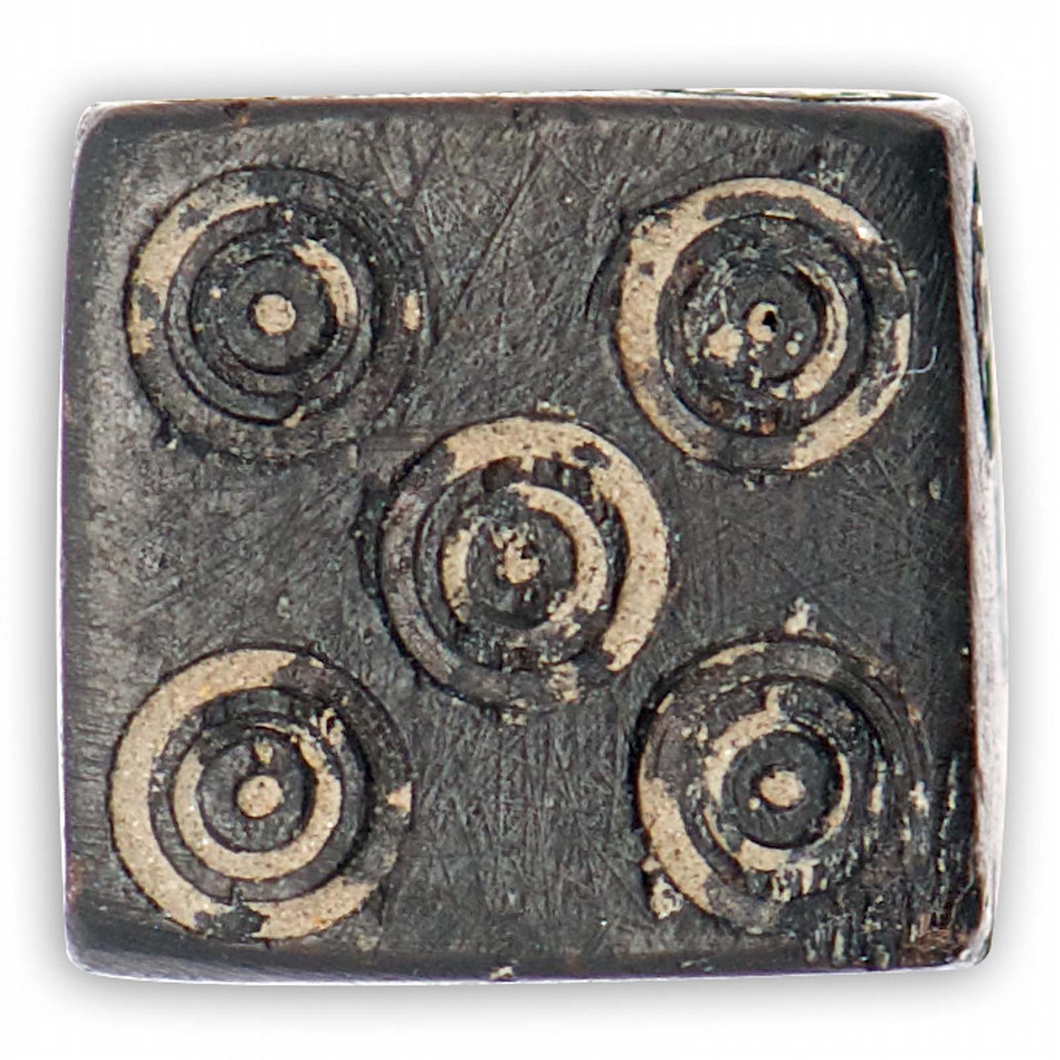ANCIENT ROMAN ARTIFACTS w/AUTHENTICITY CARD - 1st-3rd century AD - BLACK GAMING DICE! Ancient rare pair of black bone gaming dice/LOTS, 9mm dia. each.