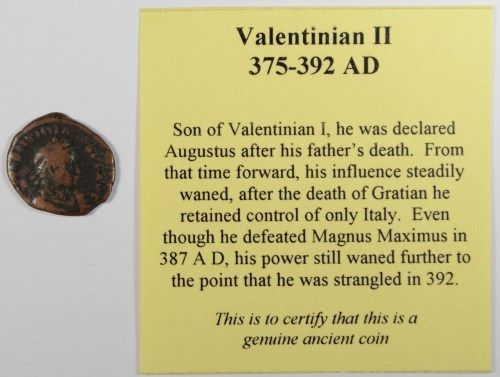 AN ATTRIBUTED ANCIENT COIN WITH BREIF HISTORICAL ACCOUNT OF TIME OF THIS COINS MINTAGE, EST. $40.00 TO $50.00 SILVERTOWNE AUCTIONS SHIPS ITEMS IN ONE OR TWO BUSINESS DAYS UPON RECEIVING PAYMENT FOR LOTS WON
