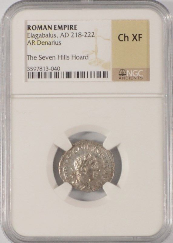 ANCIENT ROMAN EMPIRE SILVER DENARIUS, ELAGABALUS, A.D. 218-222, NGC CHOICE XF