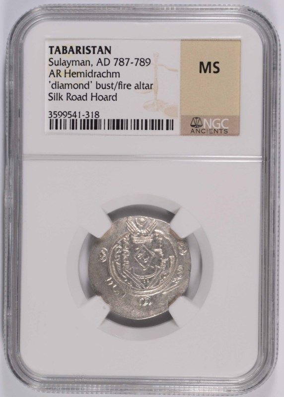 ANCIENT ROMAN HEMIDRACHM, TABARISTAN, SULAYMMAN, A.D. 787-789 NGC MINT STATE!