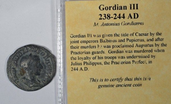 ANCIENT ROMAN ROMAN COIN, ATTRIBUTED TO THE RULE GORDIAN III CIRCA 238-244 A.D.