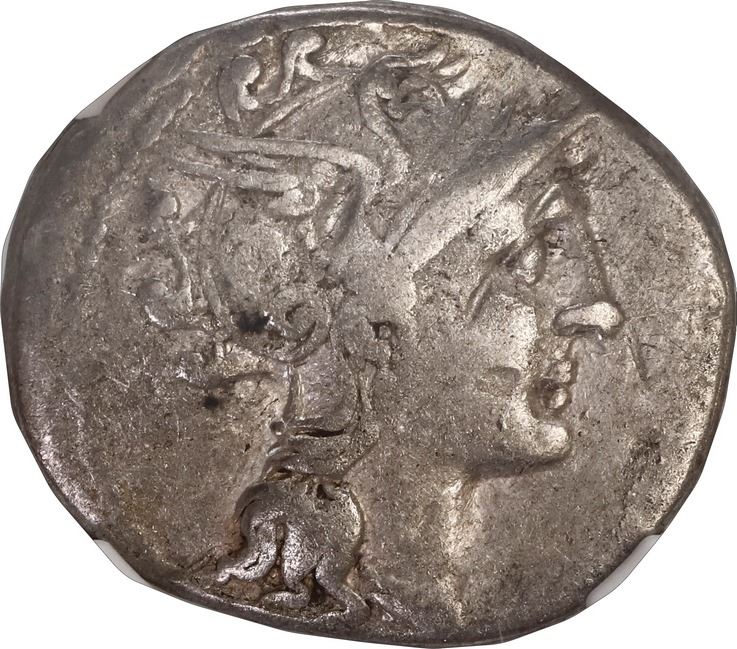 ANCIENT ROMAN, Roman Republic, AR denarius, C. Claudius Pulcher, 110-109 BC, NGC Fine (strike 5/5, s