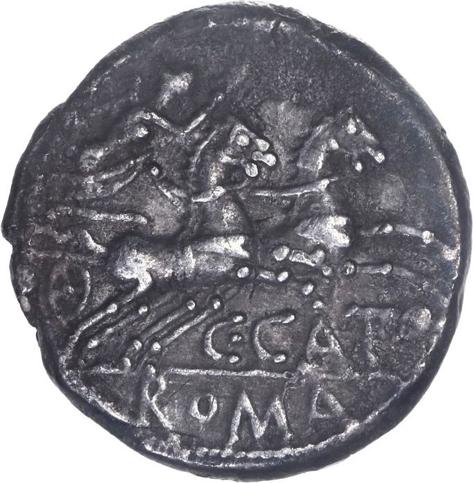 ANCIENT ROMAN, Roman Republic, AR denarius, C. Porcius Cato, 123 BC.