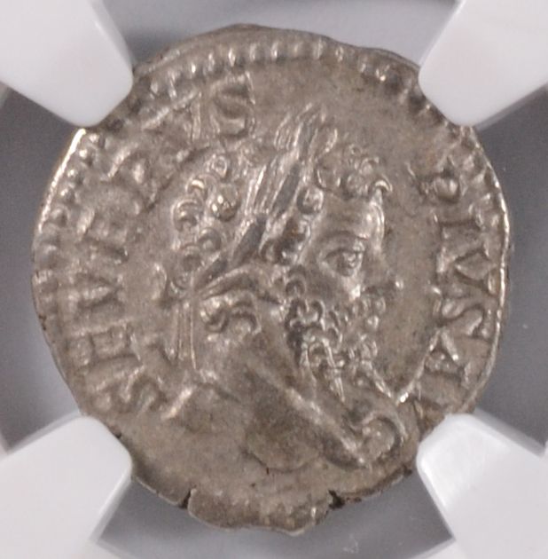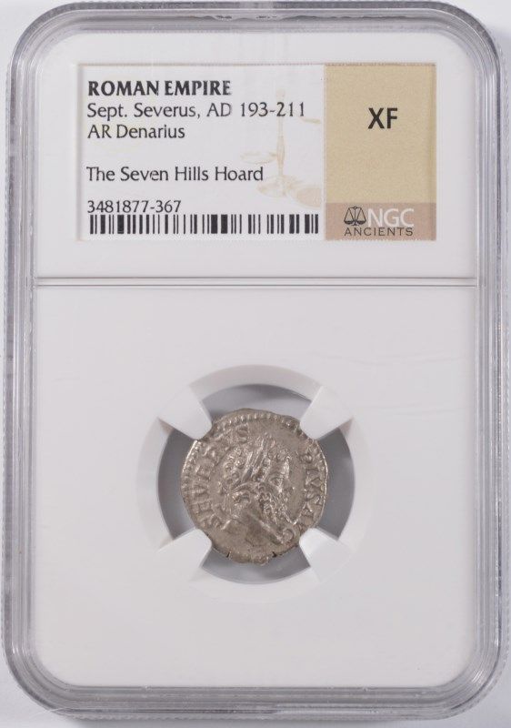 ANCIENT ROMAN SILVER DENARIUS, RULE OF SEPT. SEVERUS, AD 193-211 NGC XF!
