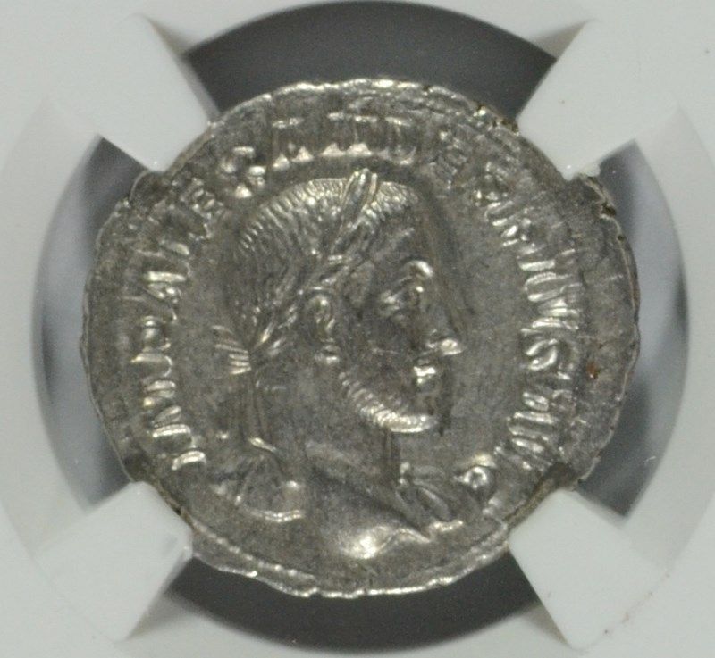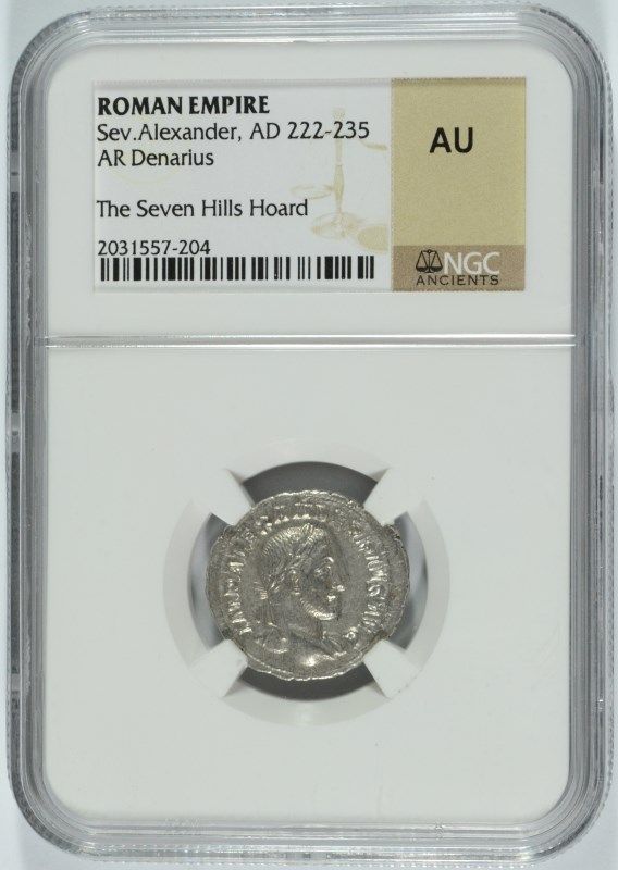 ANCIENT ROMAN SILVER DENARIUS, RULE OF SEV ALEXANDER, AD 222-235 NGC AU