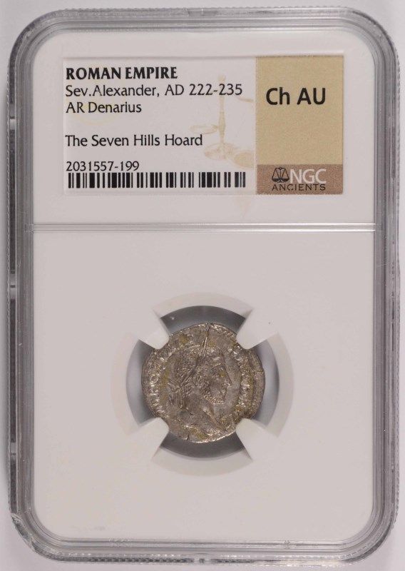 ANCIENT ROMAN SILVER DENARIUS, RULE OF SEV ALEXANDER, AD 222-235 NGC CHOICE-AU!