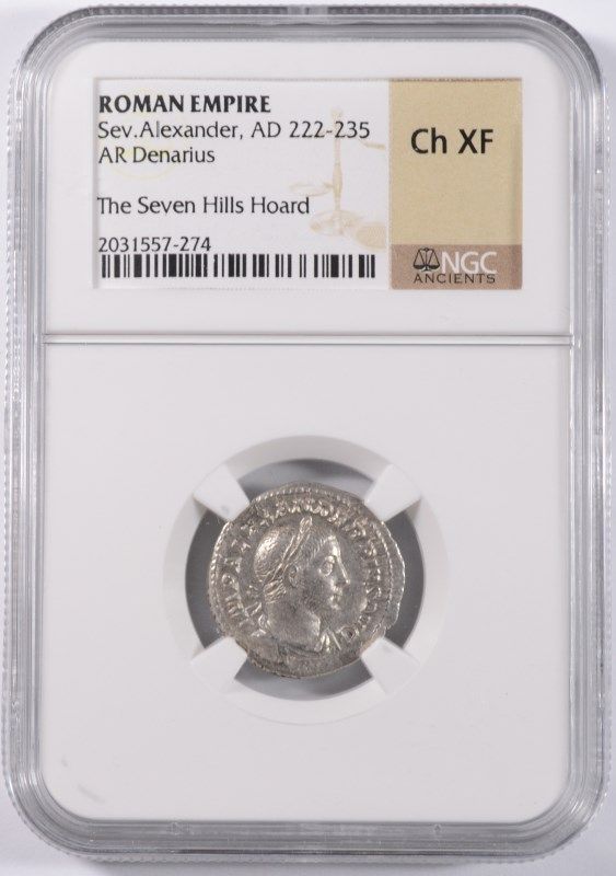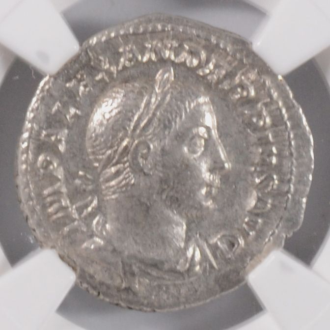 ANCIENT ROMAN SILVER DENARIUS, RULE OF SEV ALEXANDER, AD 222-235 NGC CHOICE-XF
