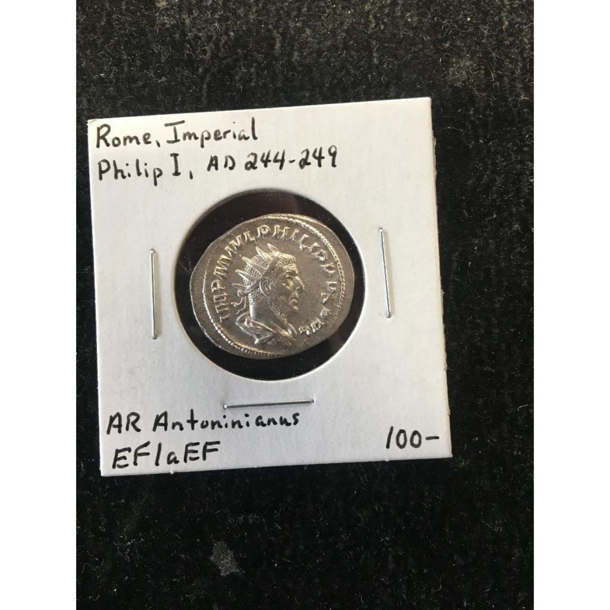 NICE GRADE IMPERIAL ROME SILVER ANTONINUS OF PHILIP I.LARGE FLAN,RIGHT FACING RADIATE BUST. AEQUITAS STANDING LEFT REVERSE