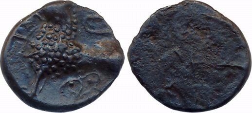 Satavahanas, Sri Satakarni, Potin, 1.42g, "Junnar Lion" type, Obv: Lion facing to left with tail upraised, traces of Brahmi legend around, Rev: Traces of symbol. Fine.