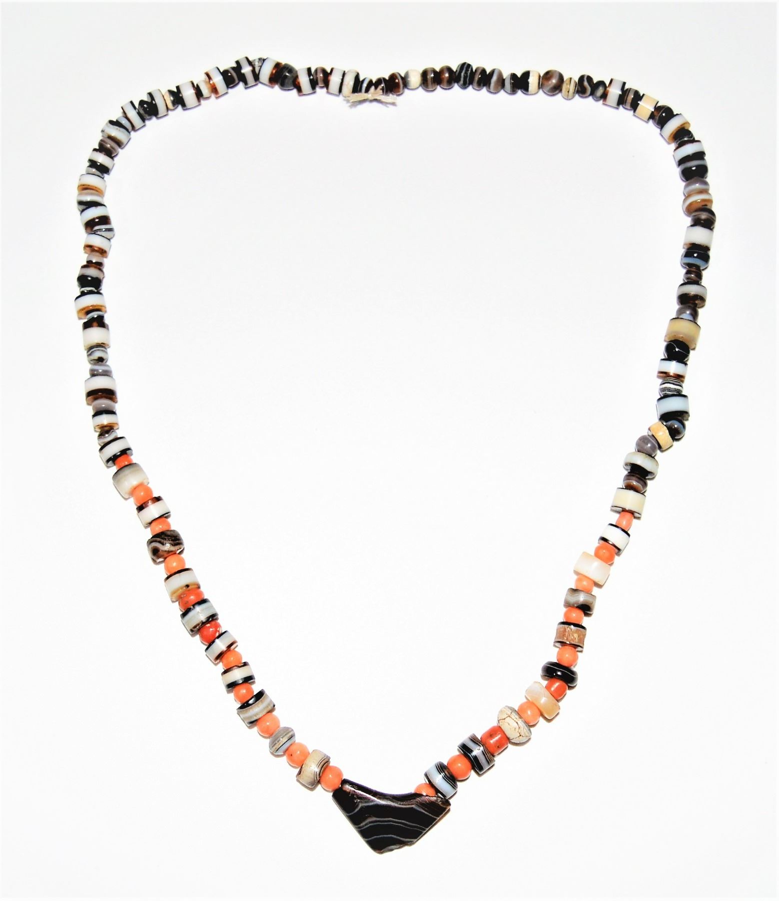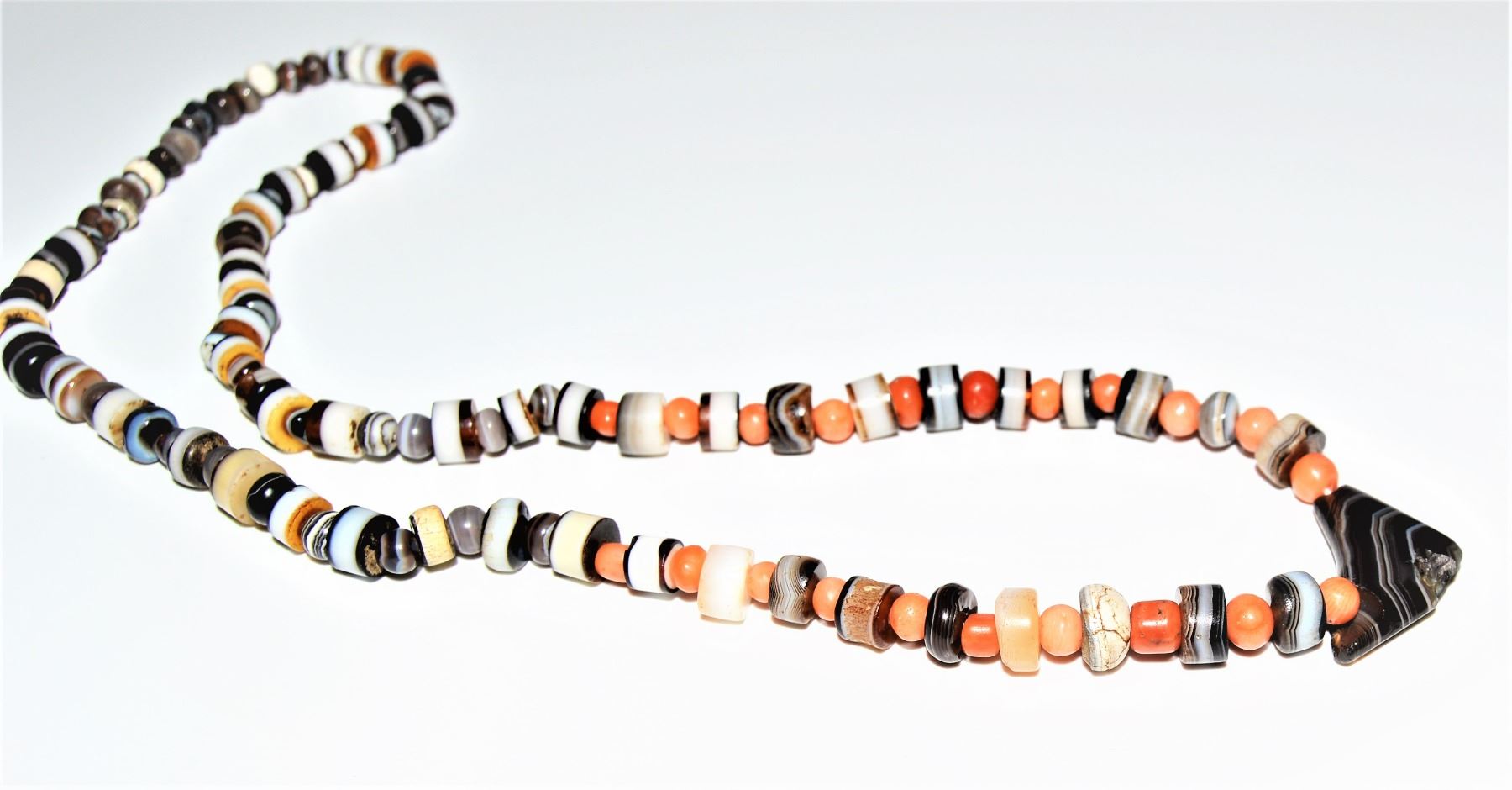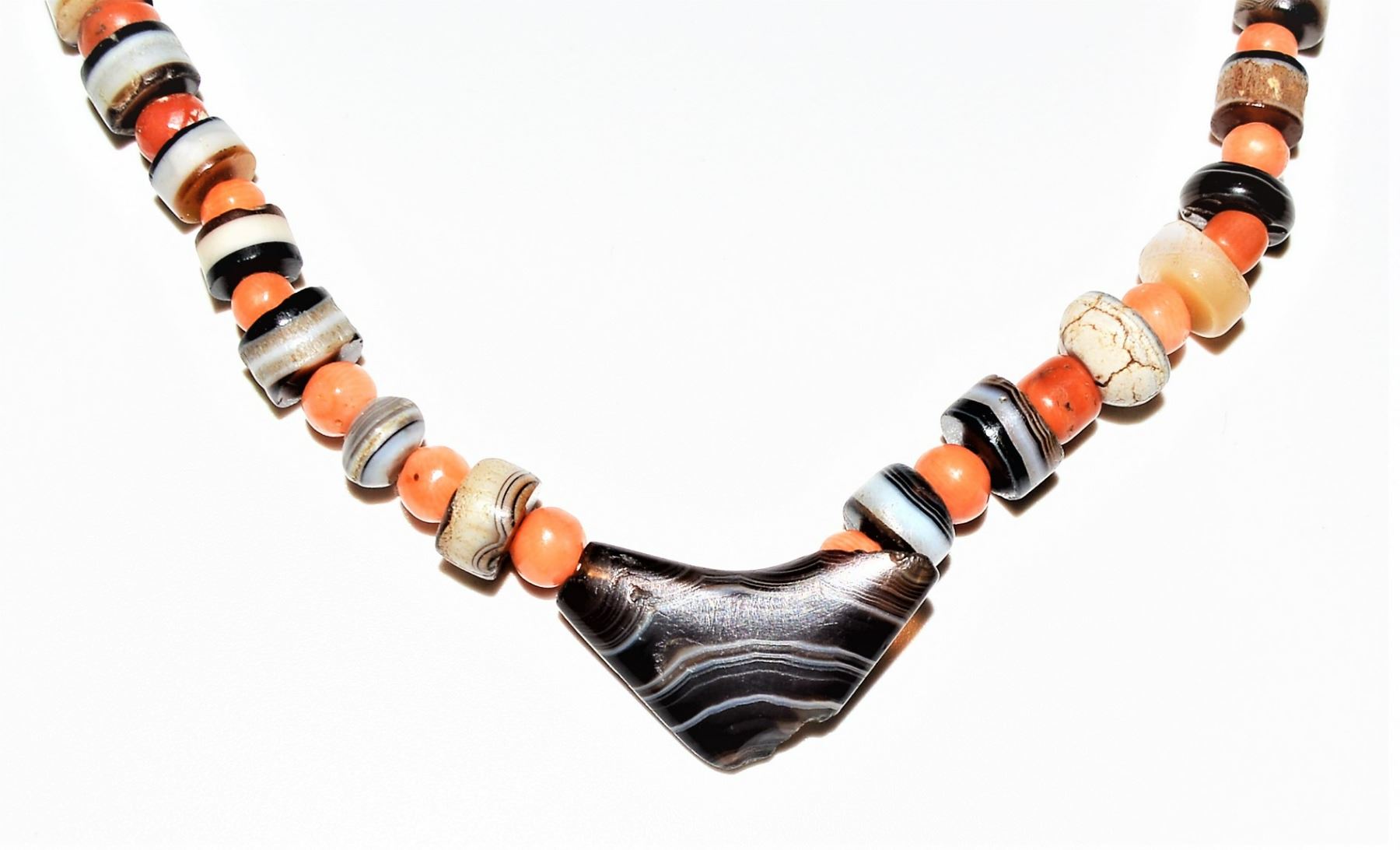 A Rare Ancient Agate Suleimani Dzi Chung Beads Necklace, around 1500-2000 years old, Most Ancient beads except With Some beads from Antique Coral and Agate Suleimani