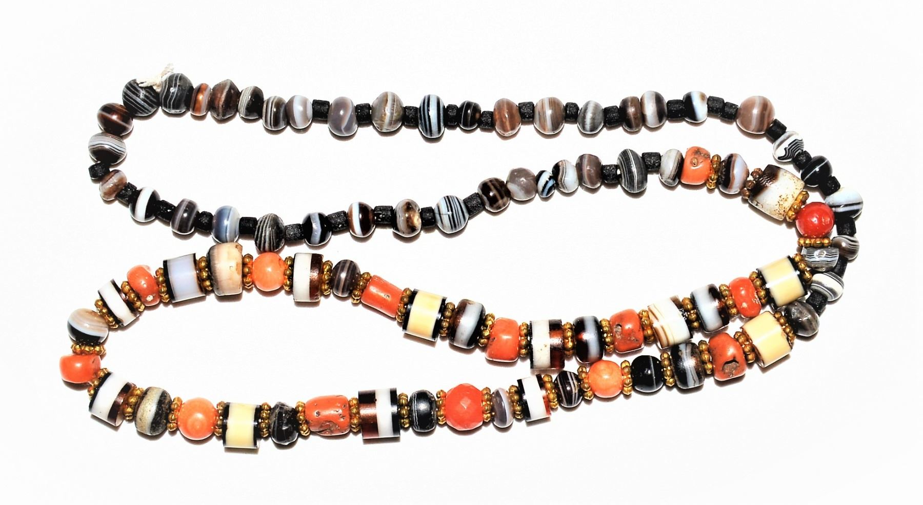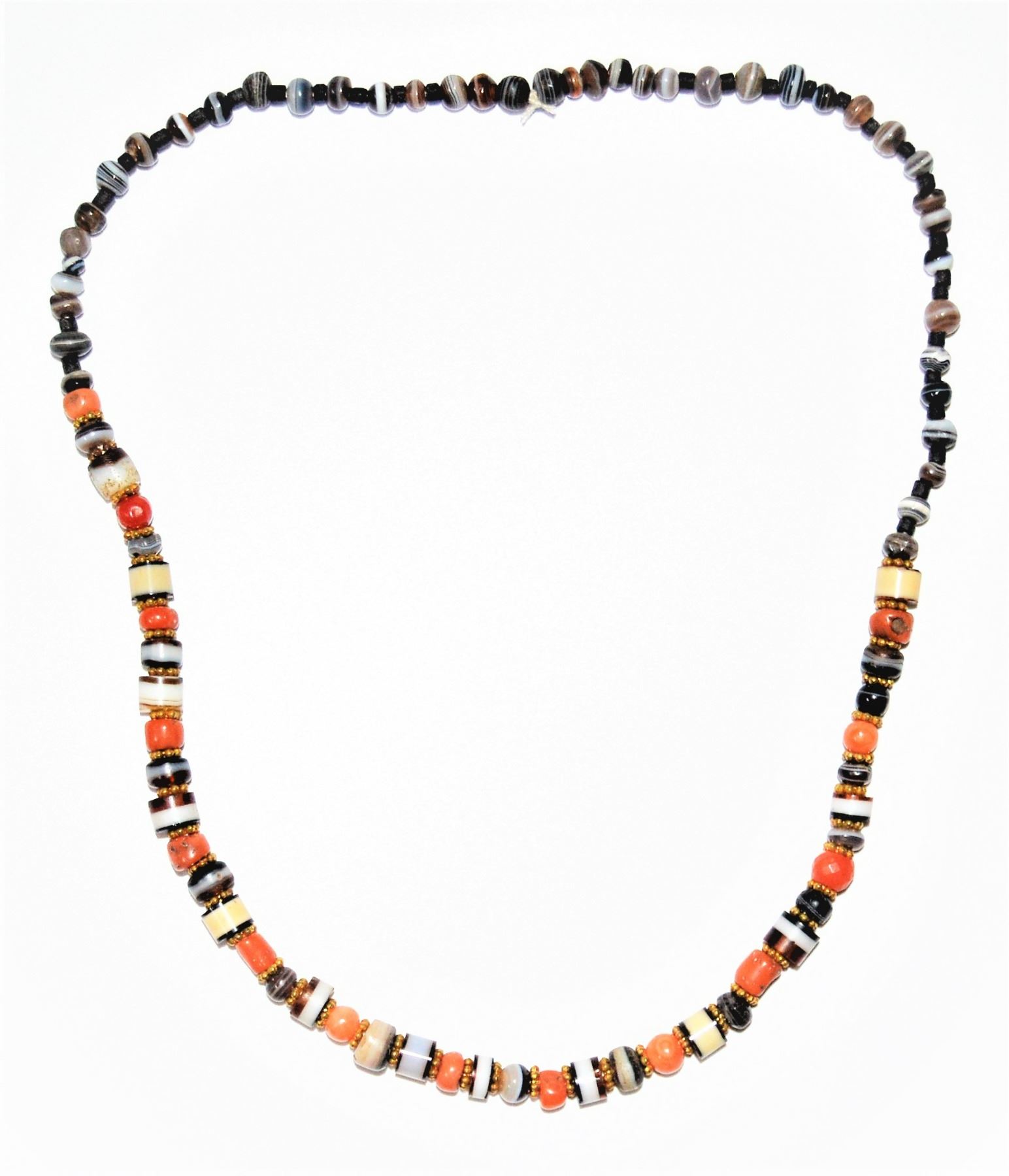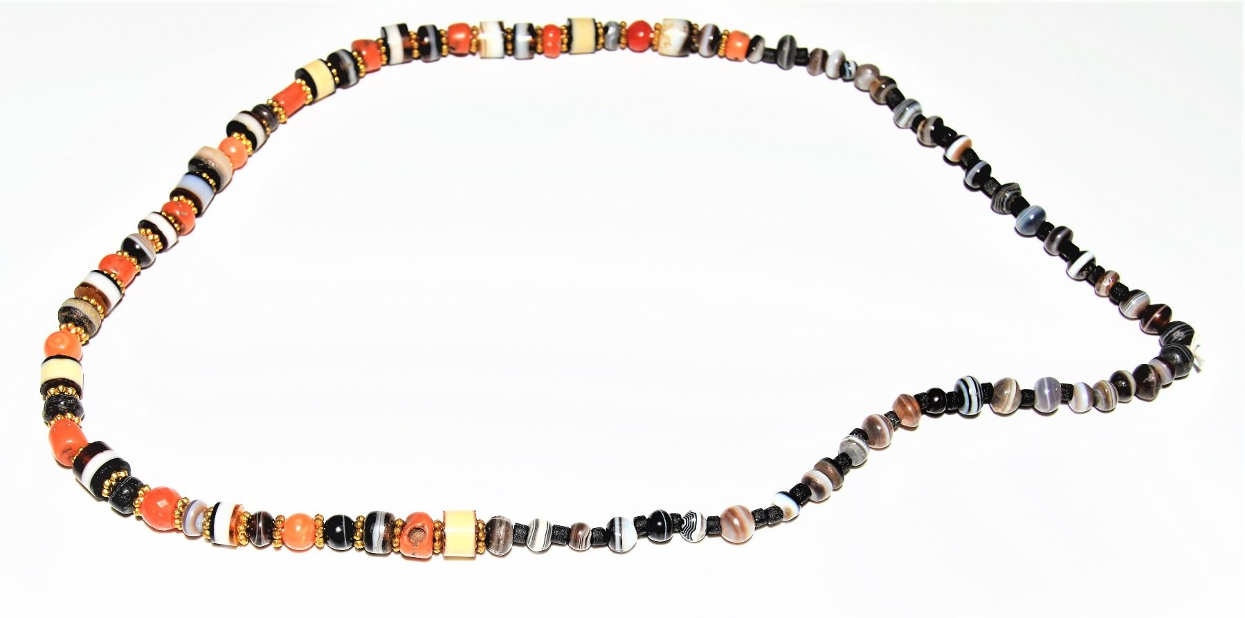 A Rare Ancient Agate Suleimani Dzi Chung Beads Necklace around 1500+ years old, With Antique Coral. A conversation with a Tibetan from Lhasa revealed that beads were