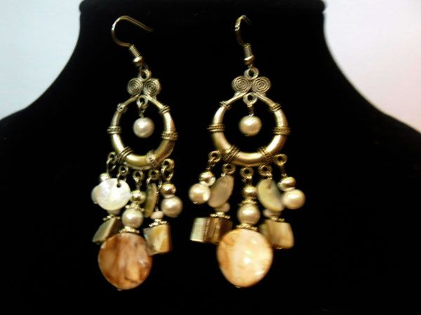 ANCIENT WHITE PEARL AND CAPIZ DANGLING EARRINGS; METAL; **|**|** ANCIENT WHITE PEARL AND CAPIZ DANGLING EARRINGS; METAL; PHILIPPINE PEARL ; MSRP: $500