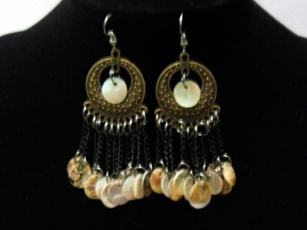 ANCIENT WHITE SHELL CHAINED DANGLING EARRINGS; METAL; S **|**|** ANCIENT WHITE SHELL CHAINED DANGLING EARRINGS; METAL; SHELL ; MSRP: $200