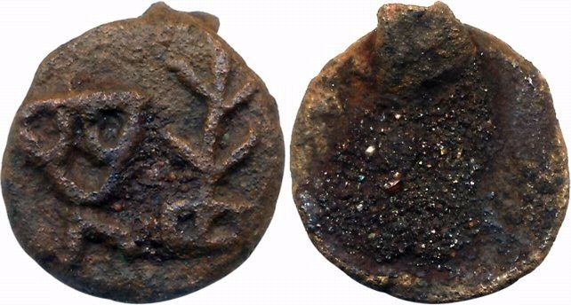 Deccan, Uninscribed Cast Copper, 3.75g, Uniface, Inverted Tree and three arched hill on obverse (Pieper# 526). Very fine.