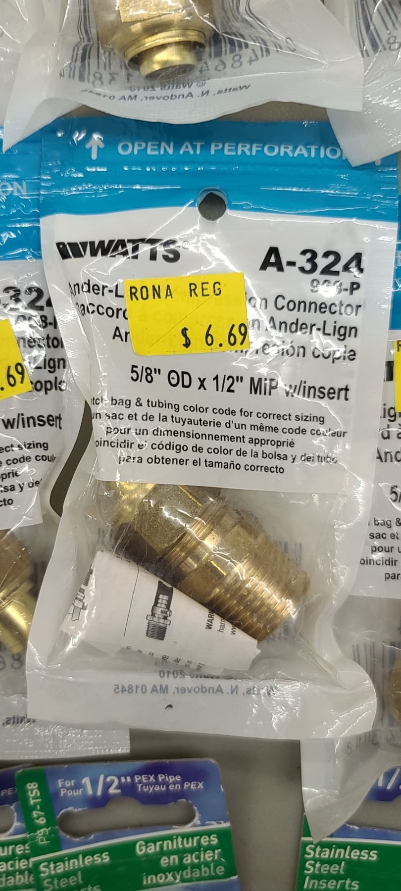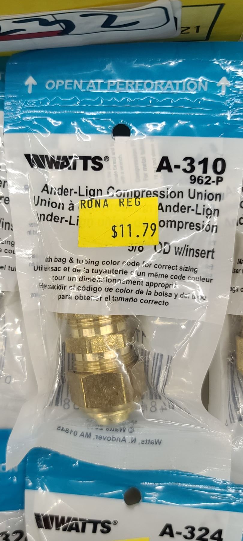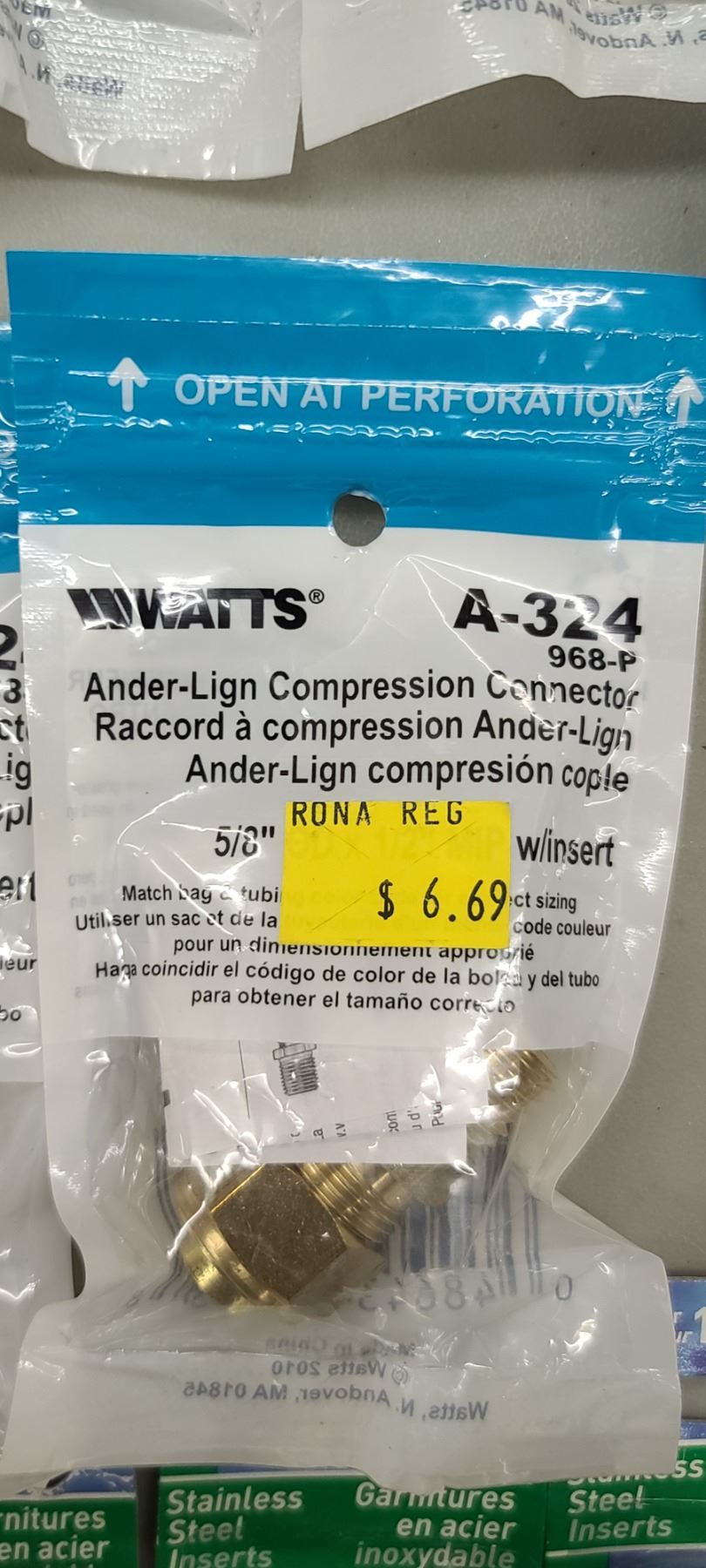 ANDER-LIGN COMPRESSION CONNECTOR A-324 QTY X 12. Q -310 QTY 12, 1/2" STAINLESS STELL INSERTS