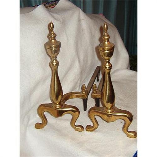 THIS IS A VERY RARE AND BEAUTIFUL SET OF SOLID BRASS FIREPLACE " ANDIRONS ". I AM NOT SURE BUT I BELIEVE THEY WERE MADE IN FRANCE IN 1919 BY AN UNKNOWN MAKER. I DO KNOW THEY WERE PURCHASED OVERSEAS BY MY LATE GRANDMOTHER IN THE 1950'S. I WISH SOMEONE OUT THERE WOULD TELL ME MORE ABOUT THEM PLEASE. The Andirons are in in excellent condition for there age. I will take more closeup pictures very soon. I HAVE OVER 800 POSITIVE FEEDBACKS FOR MY EBAY STORE.