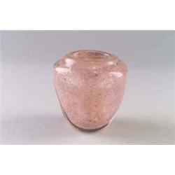 ANDRÉ THURET, Paris Vase, farbloses, dickwandiges Glas. Innenüberfang mit roséfarbenen und silberfarbenen Partikeleinschlüssen. Annähernd konische Form mit abgeknickter Schulter und leicht ausgezogener Mündung. H.: 9 cm. Bez.: andré thuret (diamantgeritzt). 1920er Jahre Lit.: Bloch-Dermant, J., Le Verre en France, Osny 1986, Abb. S. 126 (zum Vergleich).