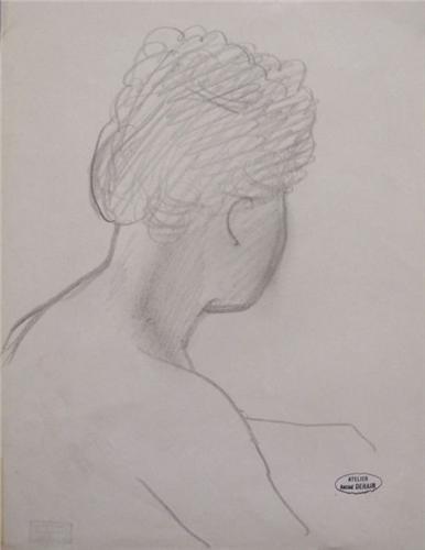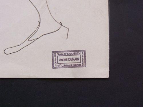 The reverse bears a drawing of a female standing figure in ink. It is also stamped on the reverse with the Andre Derain - Knaublich sale.