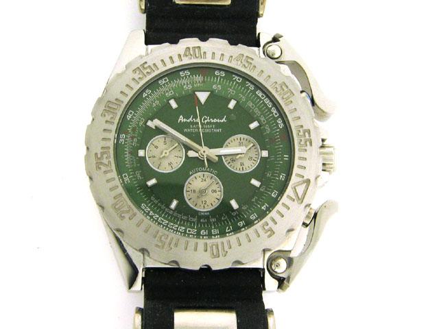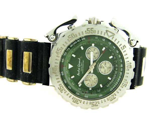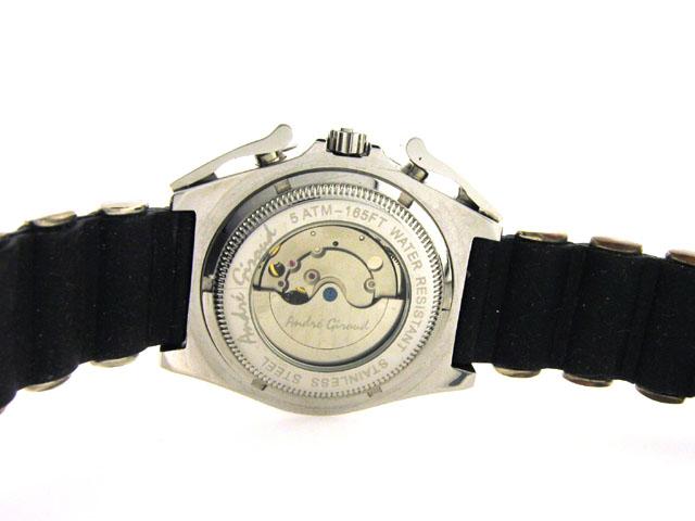 The watch has a Stainless Steel Case with a diameter of 43 mm and a rubber and metal band with clasp buckel. The Movement is Automatic. The bracelet measures 7.25 inches. The watch is Water Resitant to 5 ATM.