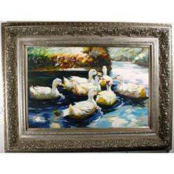 ANDREAS (European 20th century) oil on canvas; 24 inches by 36 inches; "A Study of a Group of Ducks"; signed lower right