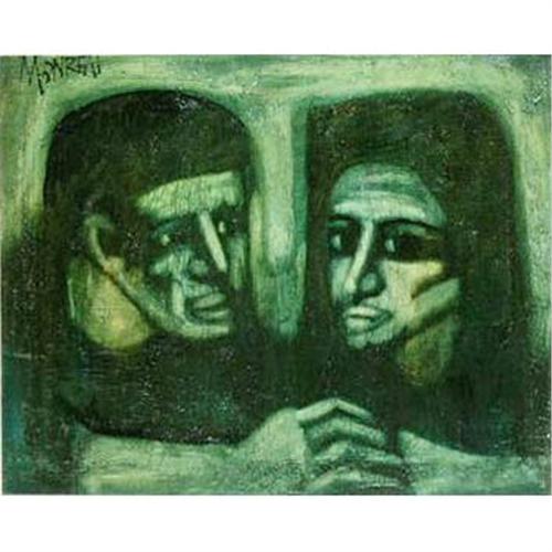 Here's a striking oil on canvas painting by the important Latin American artist, Andres Monreal, titled "The Proposal". Born in Santiago Chile in 1937, he had his first one-man show outside Chile in 1958 at the Wittenborn Gallery in New York City. He has had major one-man exhibitions in Santiago, New York, Madrid, Paris among others. His work bridges Latin American and European art. His subject matter is generally Latin American while his technique is generally European. <p>