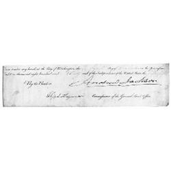 <b>172. ANDREW JACKSON</b> Fine, large bold signature "<i>Andrew Jackson</i>" as President on a section taken from a land grant, Washington, Dec. 1, 1830. Slight soiling, overall very good.<b> $250-350</b>