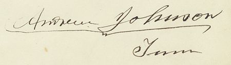 (1808-1875) Seventeenth President of the United States who came to office following the death of Abraham Lincoln. A squabble with Stanton along with his Reconstruction policies led to an impeachment by Congress. Fine bold signature as Senator adding "Tenn.", executed on an 8vo. album page with three other signatures including DAVID LEVY YULEE. Fine condition, with ample margins for cutting-out if desired.