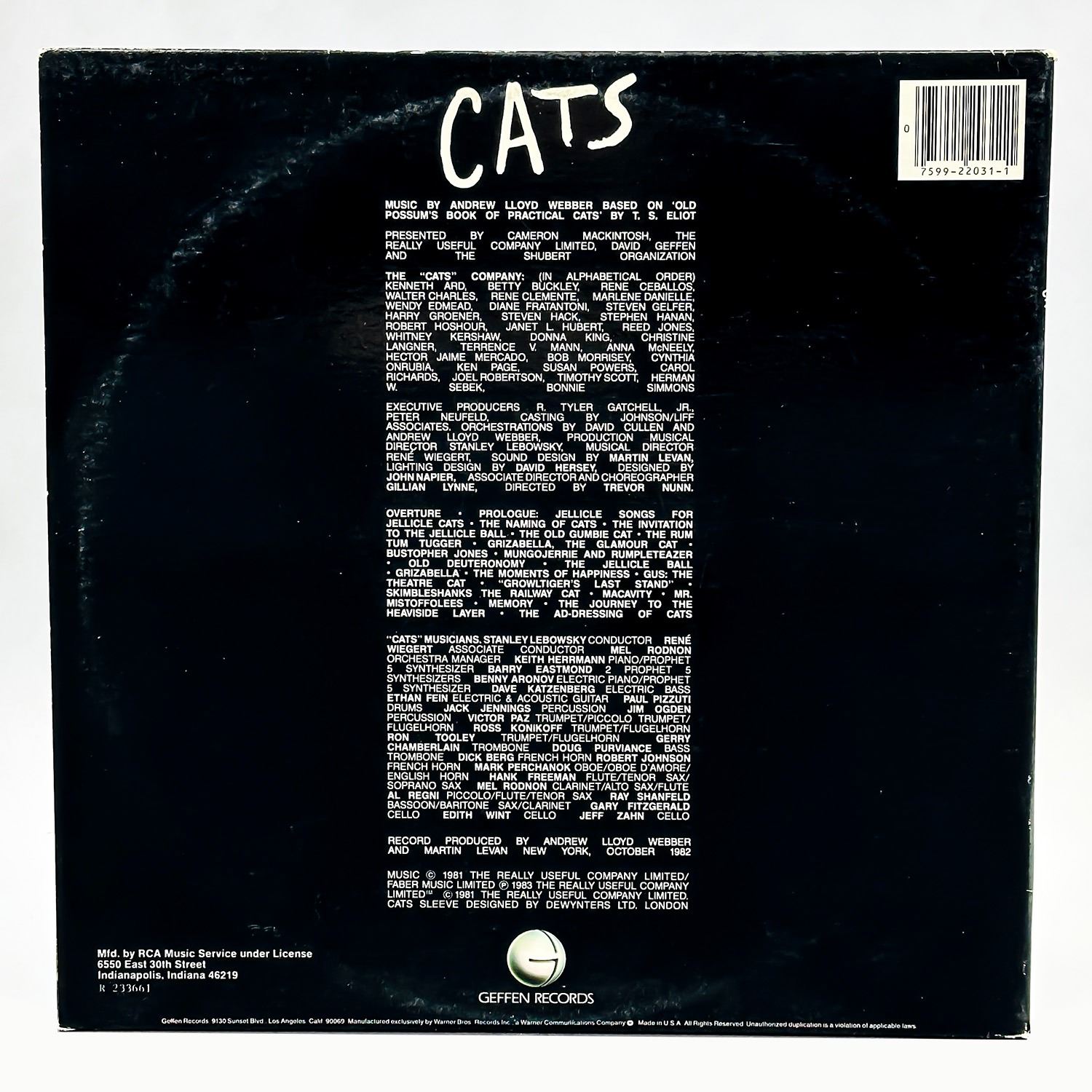 #8457 - CATS - COMPLETE ORIGINAL BROADWAY CAST RECORDING BY ANDREW LLOYD WEBBER, 2X VINYL LP GATEFOLD RECORD ALBUM, STAGE & SCREEN, MUSICAL, GEFFEN RECORDS 2GHS 2031***ITEM(S) LOCATED IN LETHBRIDGE ALBERTA. FREE TRANSPORT TO EDMONTON OFFICE AVAILABLE FOR THIS AUCTION. WORLDWIDE SHIPPING IS AVAILABLE FOR ALL ITEMS