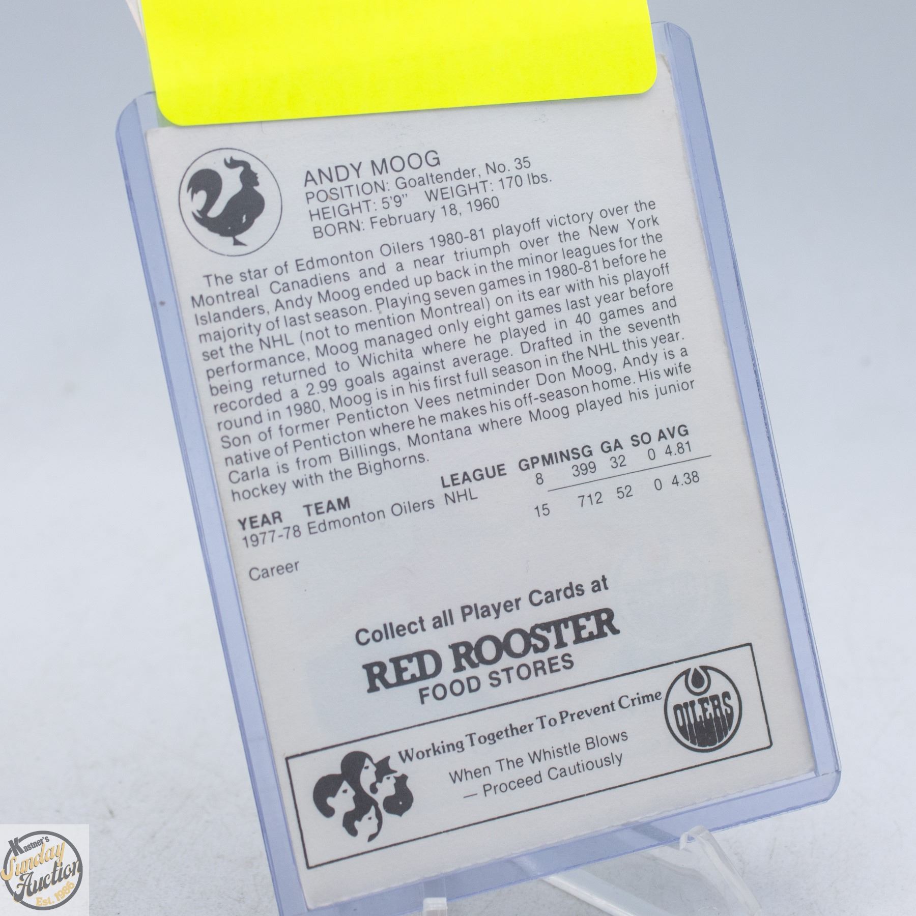 ANDY MOOG ROOKIE AUTO-PRINTED SIGNATURE