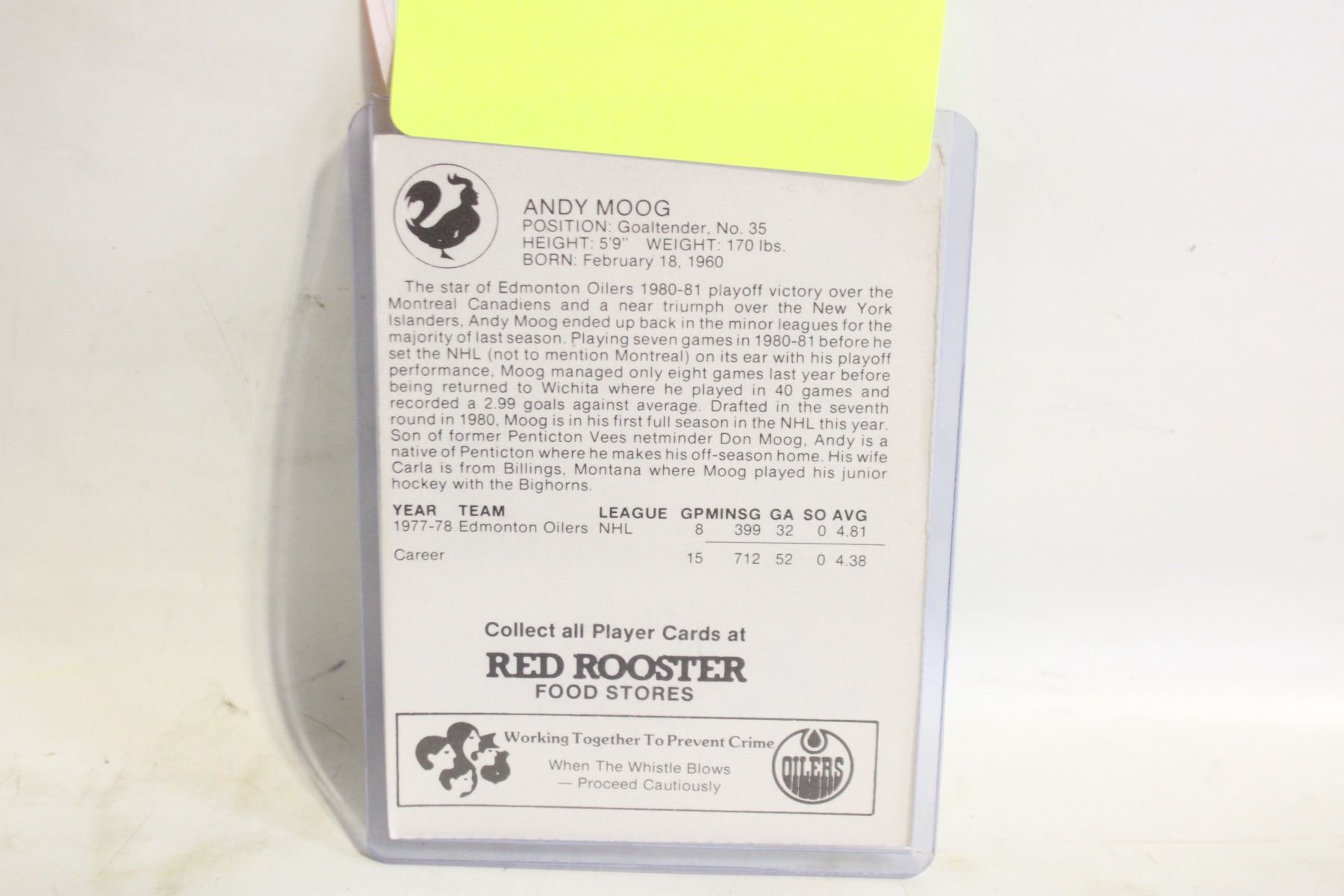 ANDY MOOG ROOKIE AUTO-PRINTED SIGNATURE