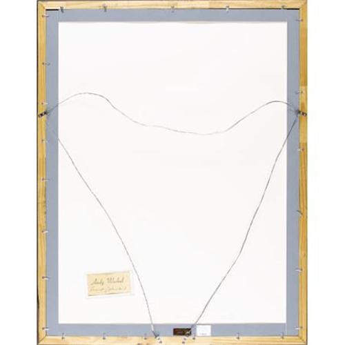 <B>ANDY WARHOL (American 1928-1987)</B></I><BR><I>Jacqueline Kennedy III (Jackie III)</B></I>, 1966<BR>Published in the portfolio <I>11 Pop Artists III </B></I><BR>Screenprint in colors on wove paper<BR>39-3/4 x 30 inches (101.0 x 76.2 cm)<BR>Published by Original Editions, New York<BR> In pencil verso: <I>A.P</B></I>.<BR>Artist's stamped signature verso: <I>Andy Warhol </B></I><BR>Signed in ink verso: <I>Andy Warhol</B></I><BR><BR>PROVENANCE:<BR>Pacific Fine Arts, San Francisco, California;<BR>Private collection, Watertown, Wisconsin.<BR><BR>LITERATURE:<BR>F. Feldman and J, Schellmann, <I>Andy Warhol A Catalogue Raisonne 1962-1987</B></I>, Amilcare Pizzi, Milan, 1997, p. 60, no. 11.15, illus.<BR><BR><B>Condition Report:</B> Mounted in five areas, in four corners and the center of the top edge, corners slightly bent, paper is slightly burned along the edges, 1/4 inch tear at lower center edge, two 1/16 inch tears along the top, two moderate handeling creases in left corner, two time stains from previous labels, skinned lower left edge from hinge, slightly faded overall, otherwise good condition.<BR><BR><b>Shipping:</b> Requires 3rd Party Shipping (<a target="_blank" href="http://www.heritageauctions.com/common/shipping.php">view shipping information</a>)