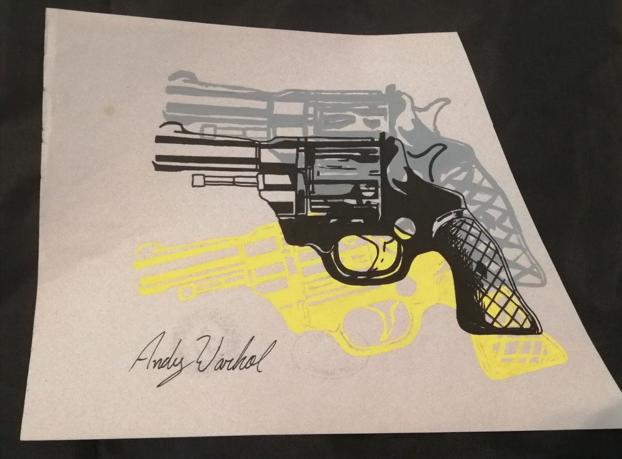 After Andy Warhol’s assassination attempt in 1968 by Valerie Solanas, much of the violent imagery that had occupied his work of the 1960s—electric chairs, traffic accidents, nuclear explosions—vanished from his new pictures. Instead, during much of the 1970s, both famous and unfamous faces became a prominent trope. Warhol also began to incorporate different series into his silkscreens, including the infamous oxidation paintings and the “shadow” paintings of the late 1970s. Yet as the injuries from 1968 exerted their relentless and painful influence upon Warhol’s life and work, he returned in 1981 and 1982 to the subjects that he had avoided for more than a decade. 1982 saw showings on opposite sides of the Atlantic for Warhol’s Guns, Knives, and Dollar Signs, some of the most ominous and captivating work of his entire career. The revolver gun drawing 1981-1982, exhibits Warhol’s full-circle return to the events that shook him to his mortal core in 1968, this is the exact style of pistol that almost claimed his life two decades before his death.