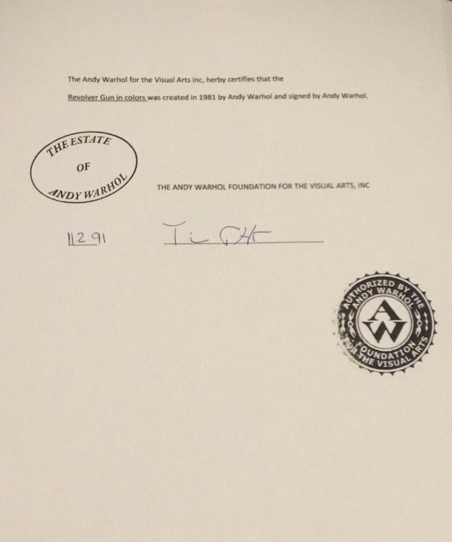 Signed on front by Andy Warhol, and stamped by the estate and supplied with a letter from the Andy Warhol foundation.
