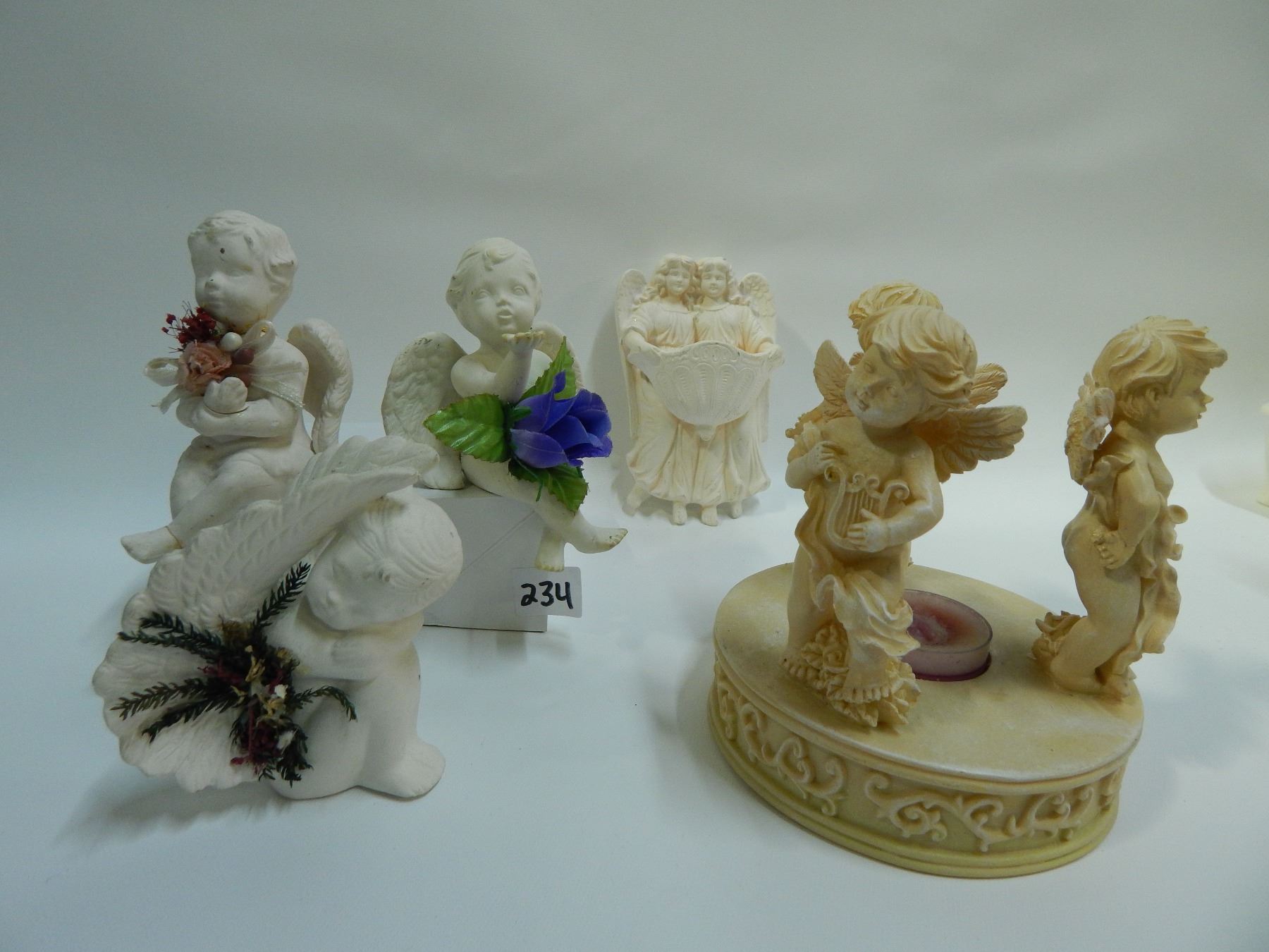 3 SMALL CHERUB ANGELSWITH FLOWERS/CIRCLE OF 3 CHERUB ANGEL CANDLE HOLER/2 SISTER ANGEL WALL PLAQUE