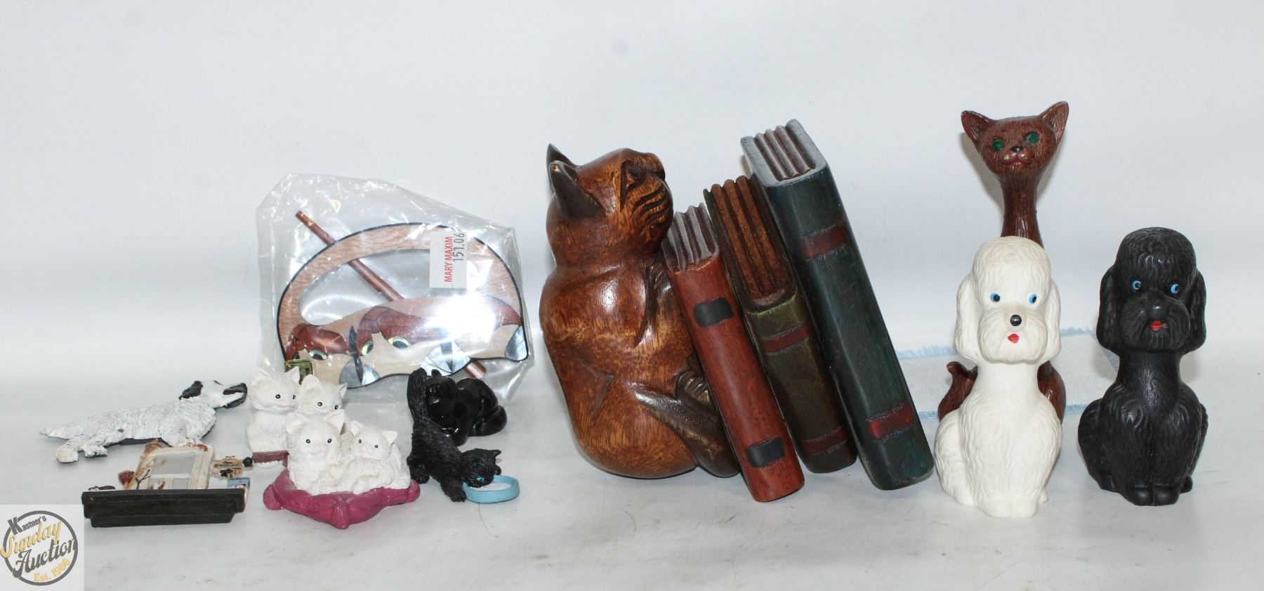 ANIMAL DECOR LOT HAND CARVED WOODEN CATS,